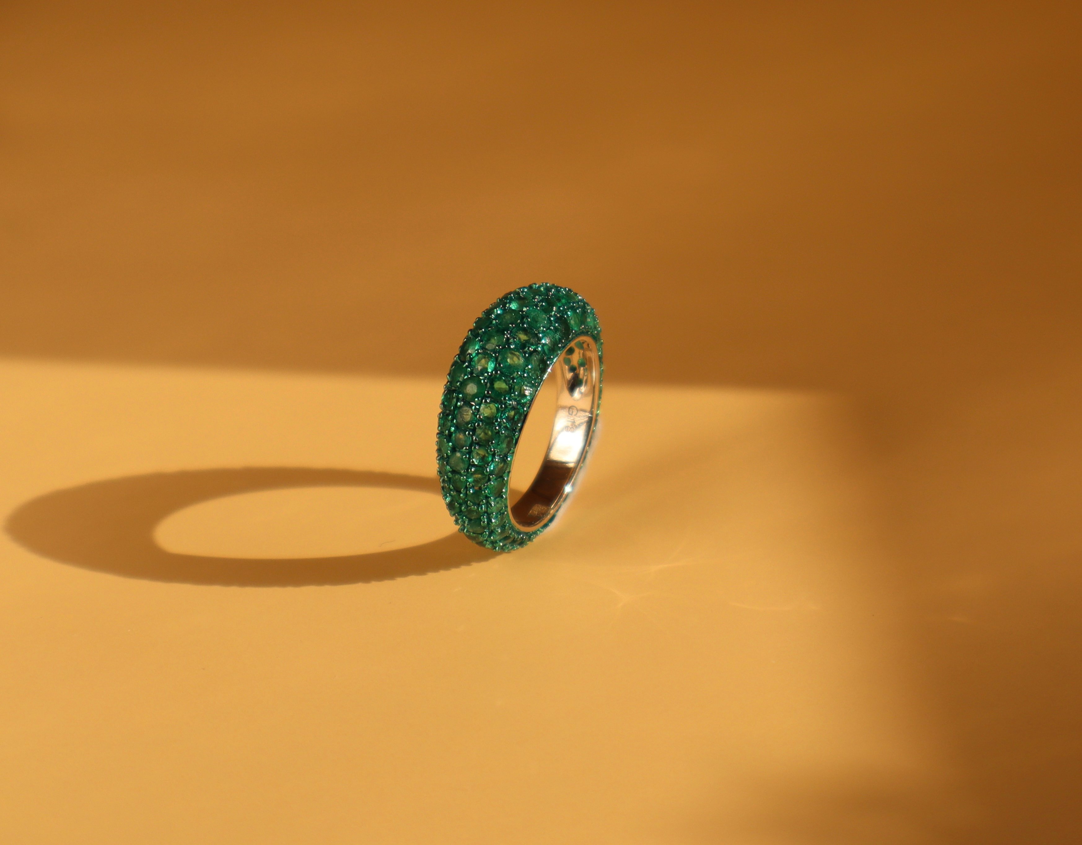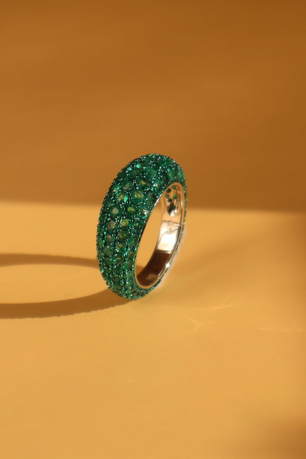 18k white gold with emerald
