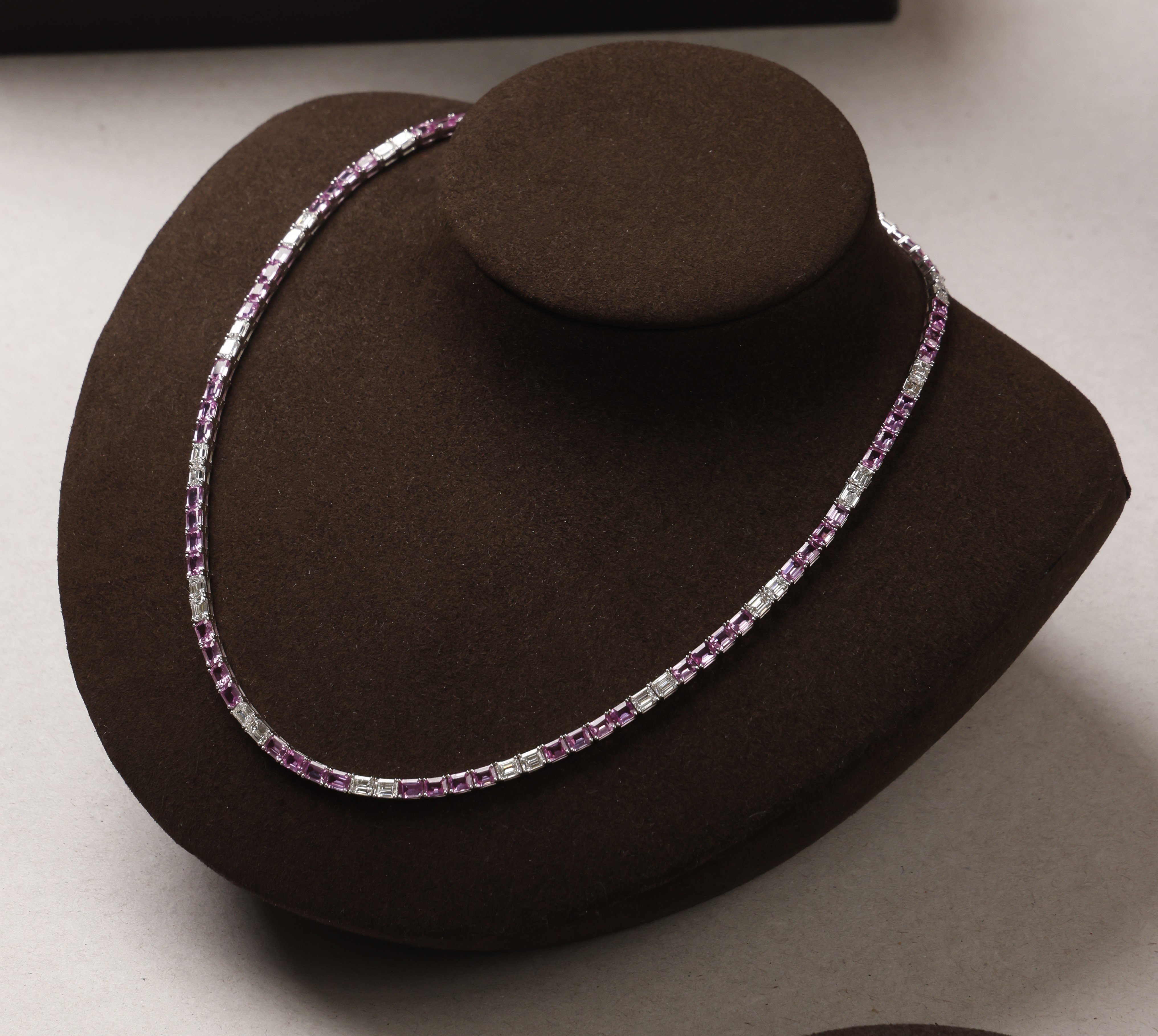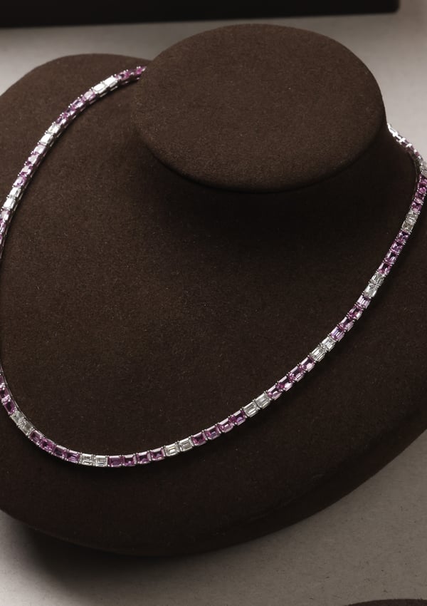 18k white gold with diamond and pink sapphire
