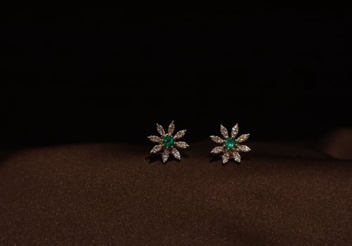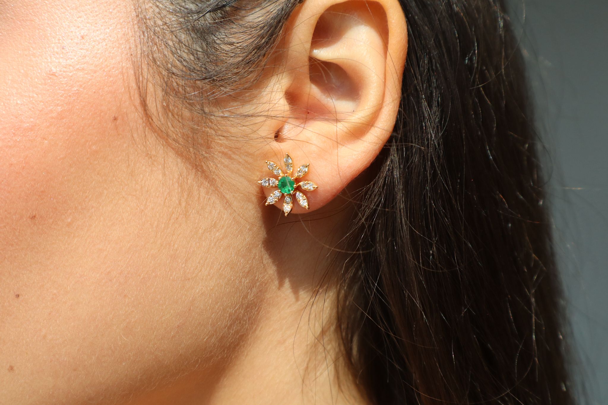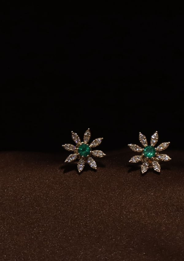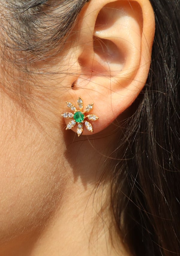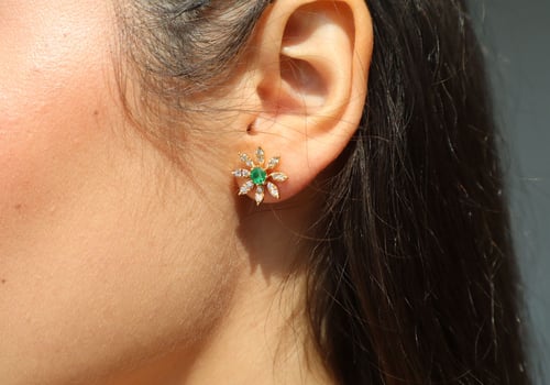 18k yellow gold earring with diamond and emerald