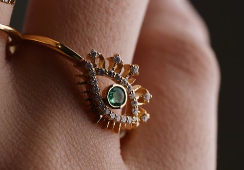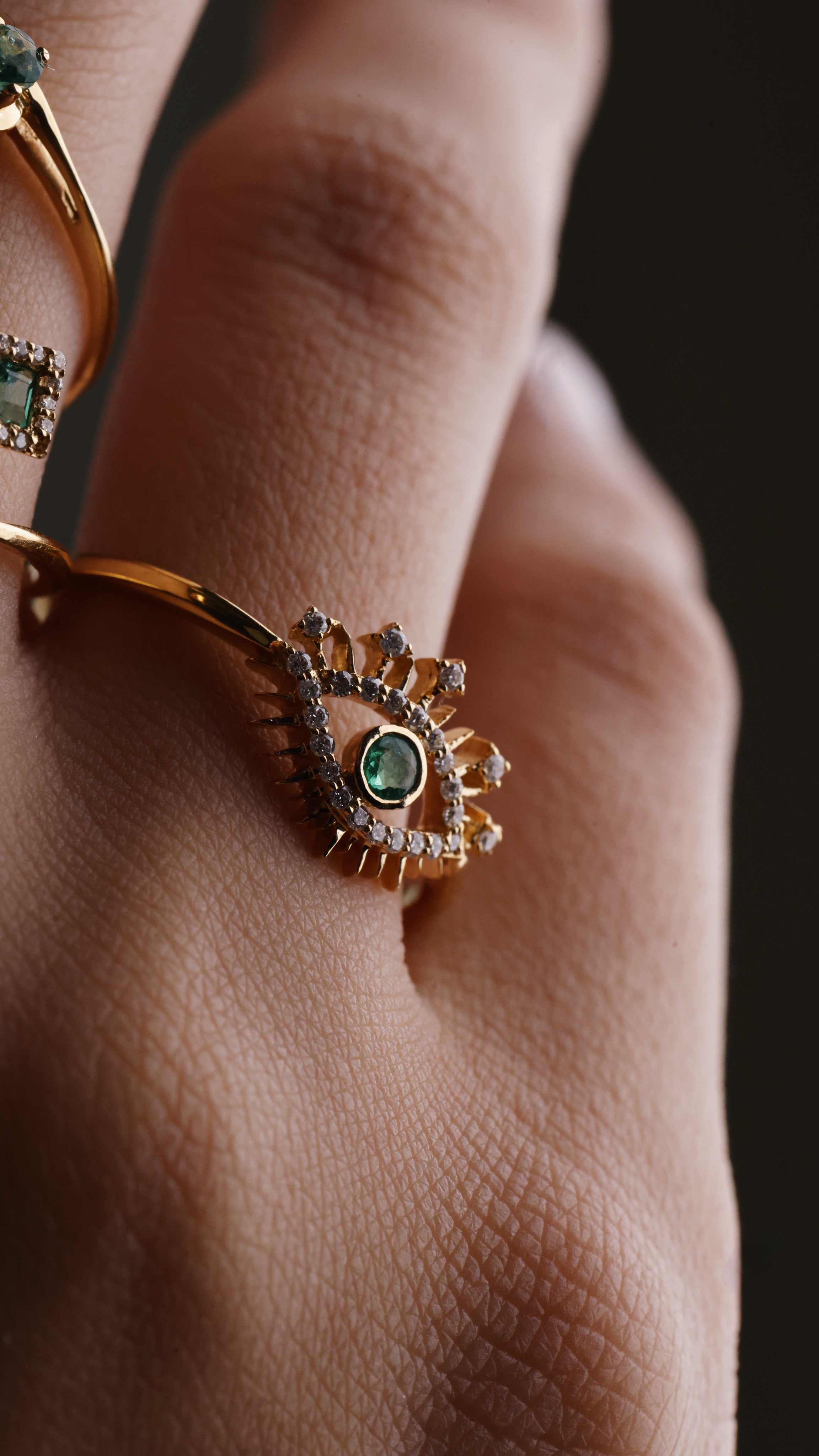 18k yellow gold with diamond and emerald