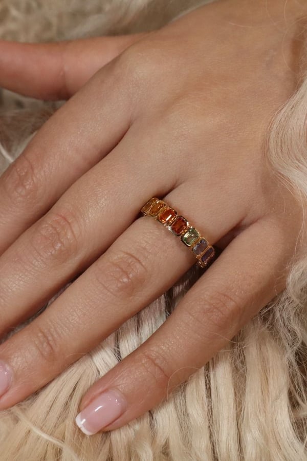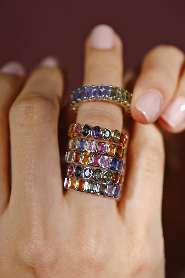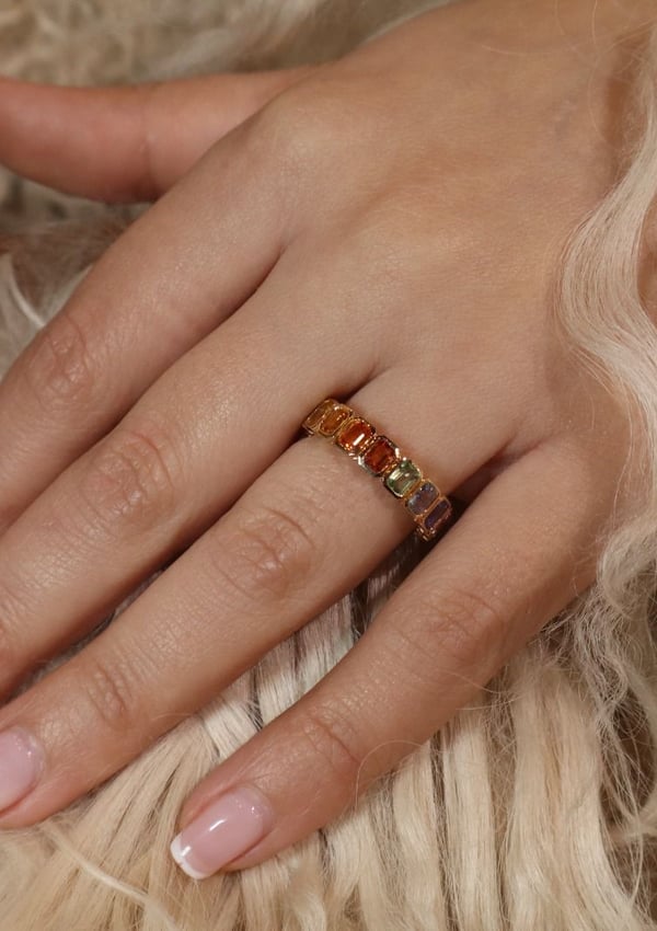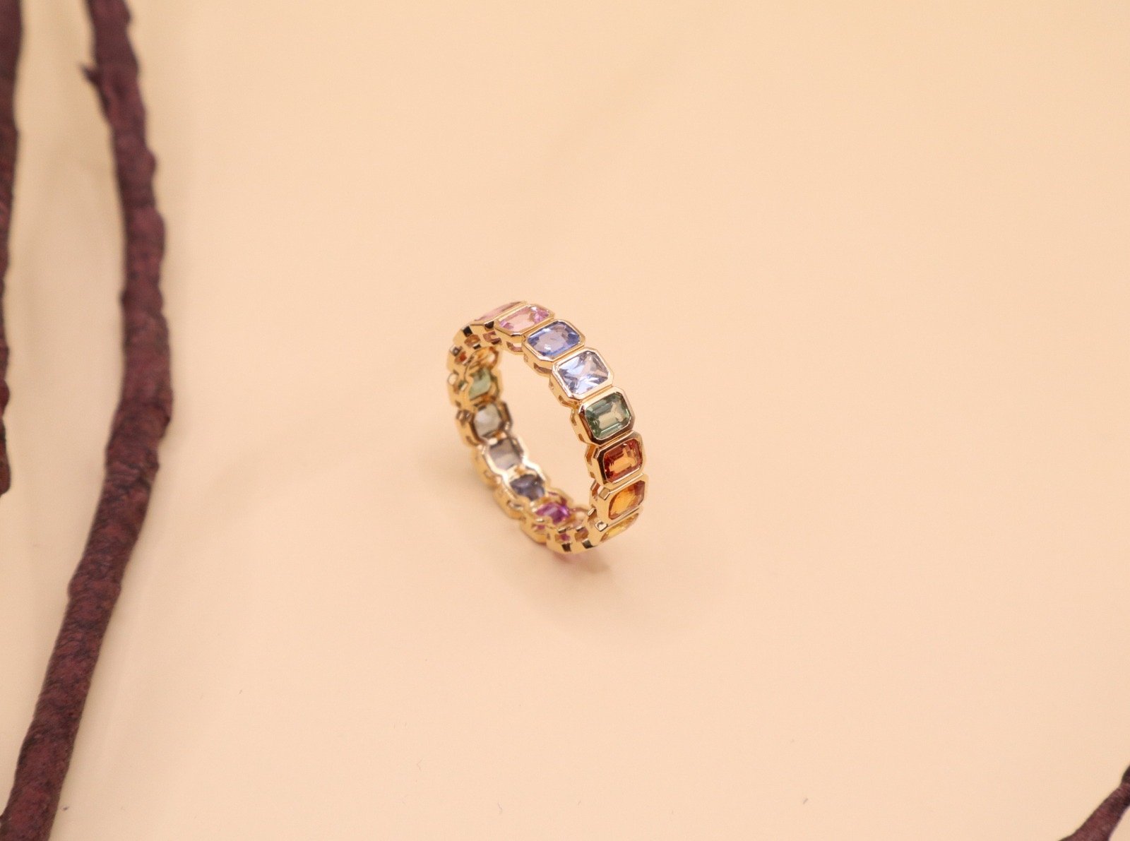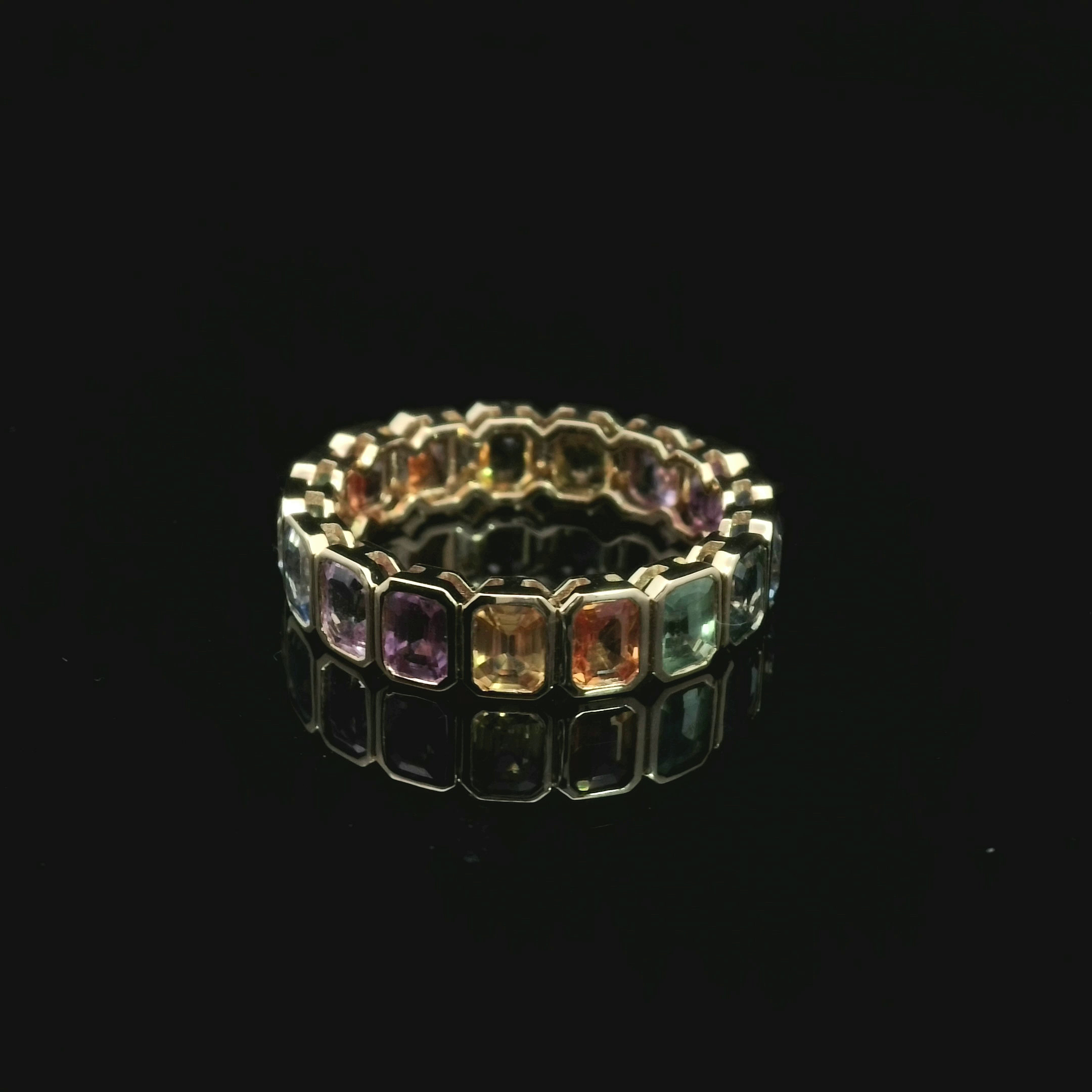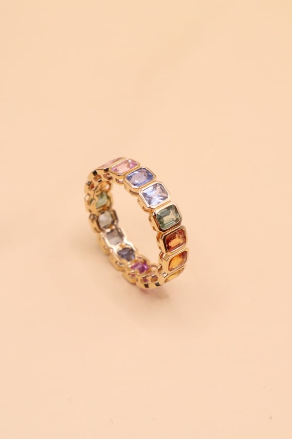 18k yellow gold with rainbow sapphire